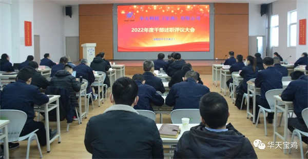 1月4日,華天科技(寶雞)公司在多功能會議室舉行了2022年度經營班子、中層干部述職測評大會。公司領導、中層干部、員工代表共計57人參加會議。